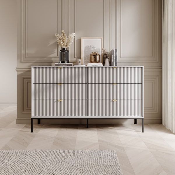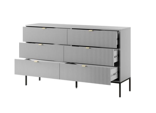 NOVAR Grey Chest of Drawers - Extra Large-sized, 6 Drawers