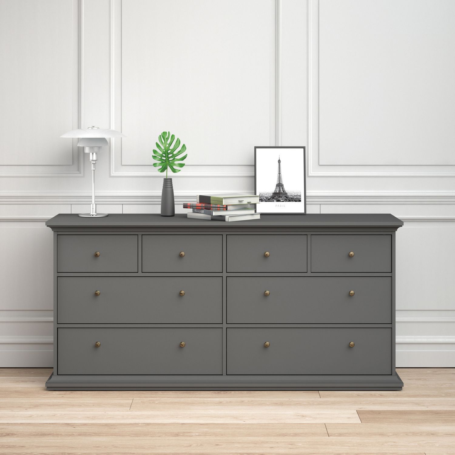 PORTHOPE Grey Chest of Drawers - Extra Large-sized, 8 Drawers