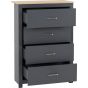 PORTLETHEN Grey Chest of Drawers - Medium-sized, 4 Drawers