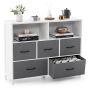 This durable dresser provides ample storage space, which can easily hold your decoration, book and magazine. The organizer is made of high-quality boards for durability. Extra support leg in the center ensures structural stability. The tabletop and 2 open shelves provide space for photo frame, flower and potted plant. And the drawers with three-layer construction are equipped with convenient handles that allow them to be easily opened and closed.More, the drawers can be completely removed and folded when not in use. Additionally, this dresser is equipped with 2 safety anti-tipping devices that can secure the cabinet to the wall. And non-slip foot pads add extra stability. The versatile storage units are elegantly styled and will keep your living space organized! Sufficient Storage Space: The bedroom dresser has 5 storage drawers as well as 2 open shelves.