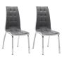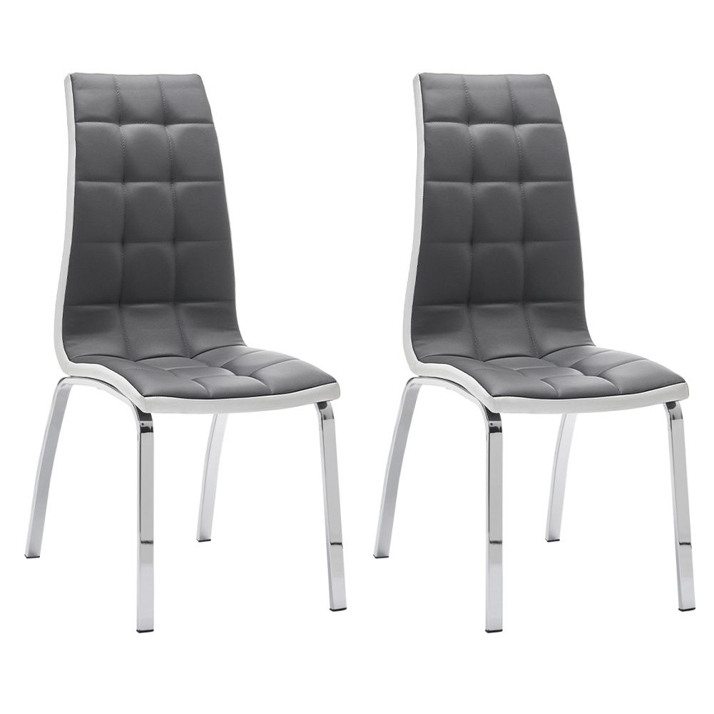 Elevate your dining room with the sleek design of this dining chair. Boasting a grey grid curved back and polished chrome metal legs, its two-tone aesthetic adds a modern flair to your space. Built to last, this chair withstands the rigors of a busy family dining area while the PU upholstery ensures easy cleaning.