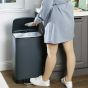 Recycling can also be easy. All you have to do is step on the pedal and throw the waste into the inner bucket. You don't even have to touch the bin with your hand, which ensures hygiene. In addition, you don't have to worry about your dog pushing the bin and finding all the kitchen waste on your floor. Only when you step on the pedal, the lid will open. A clever waste disposal solution This 30 litre bin is robust and compact and impresses with its sophisticated design. The inner bin is easy to remove and clean with the side handles, and the opening on the back of the inner bin prevents your bin liner from sliding over and over again. Product details: