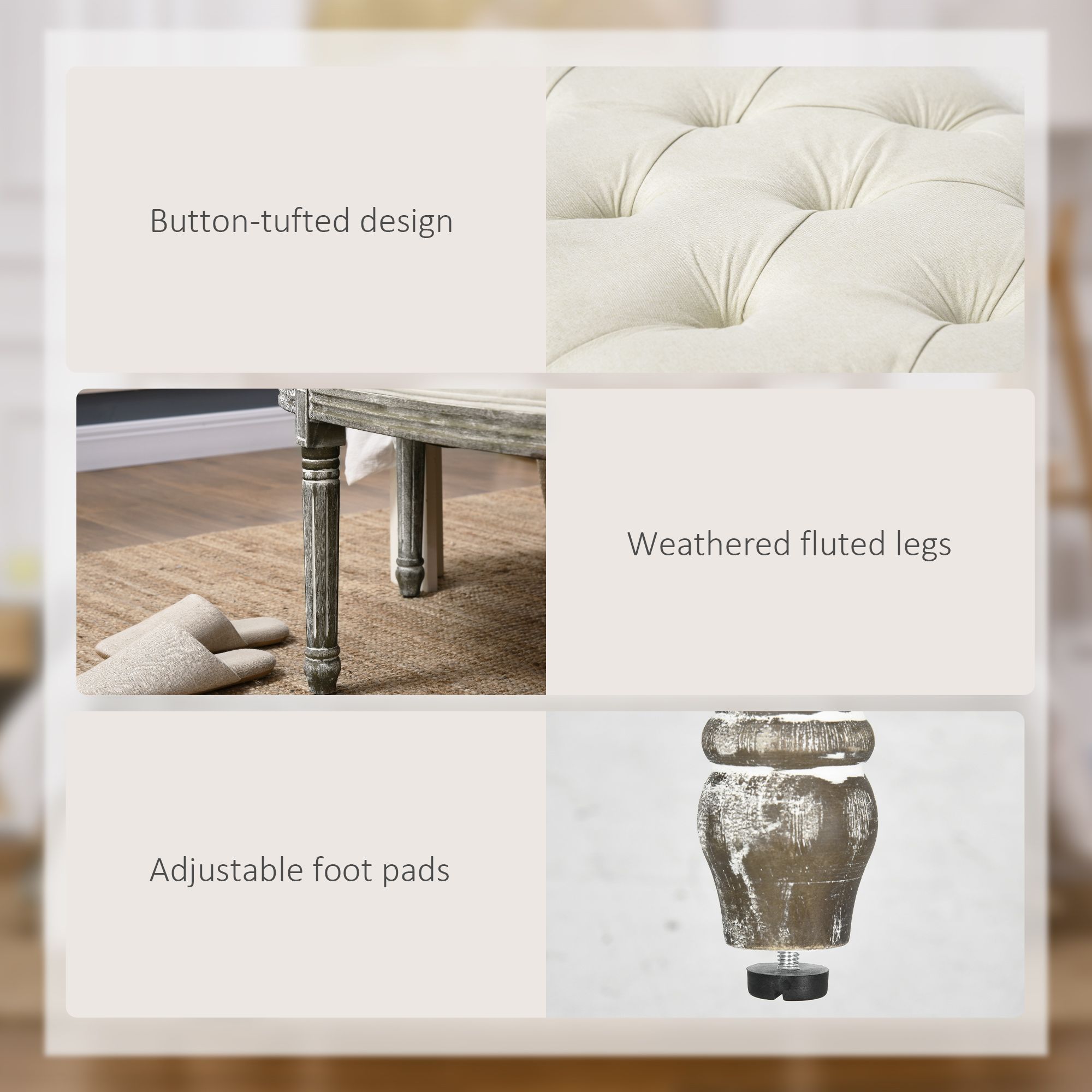 Half-Circle End Bench Ottoman Footstool Tufting Padded Seat Brushed Wood Base Antique Accents Home Seat Furniture Cream White