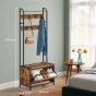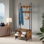 Hall Tree - TARVA Industrial Entryway Bench with Shoe Storage, Shelf and 7 Hooks - Brown