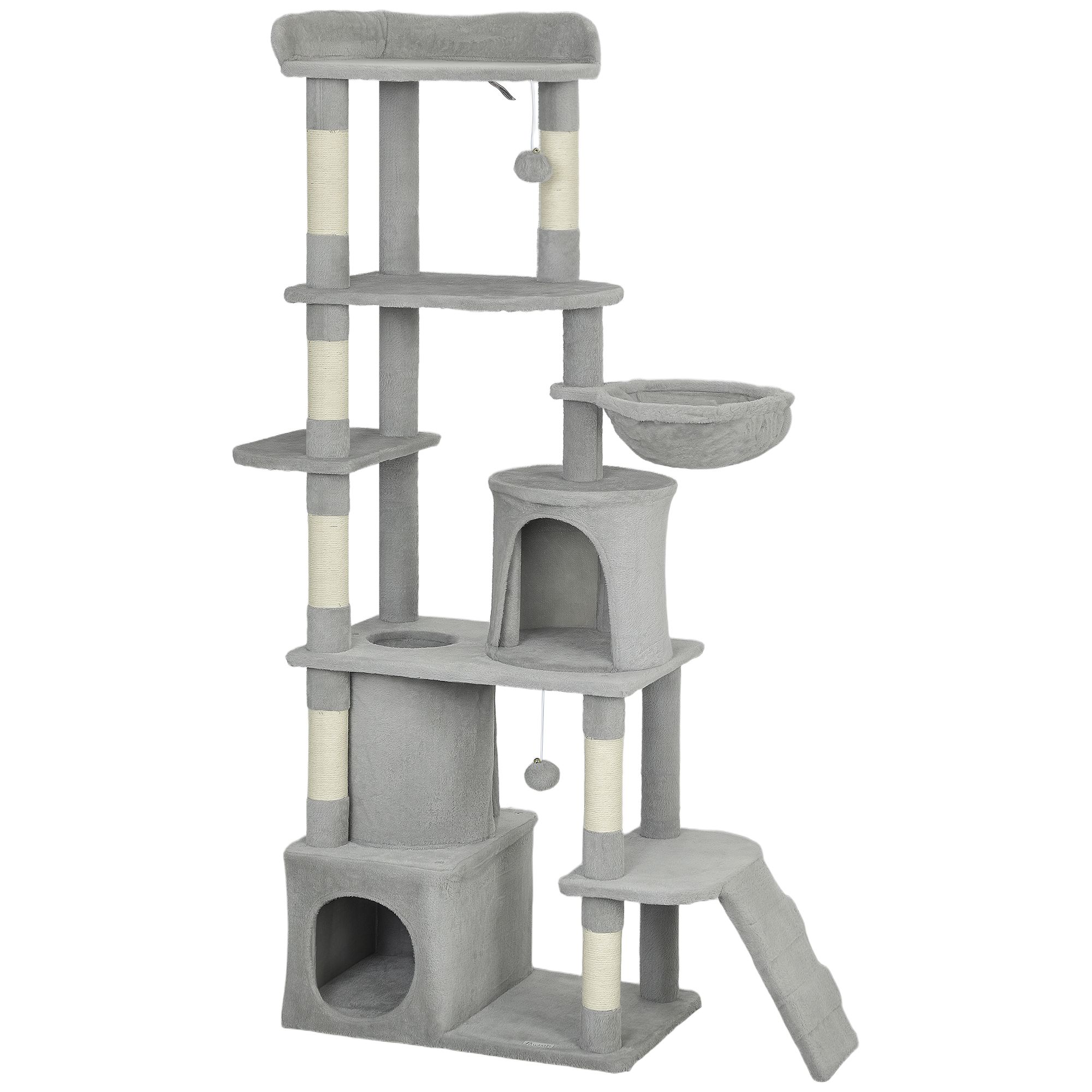 HALYVORN Large Cat Tree, Cat Tower with 7 Scratching Posts 170cm - Light Grey