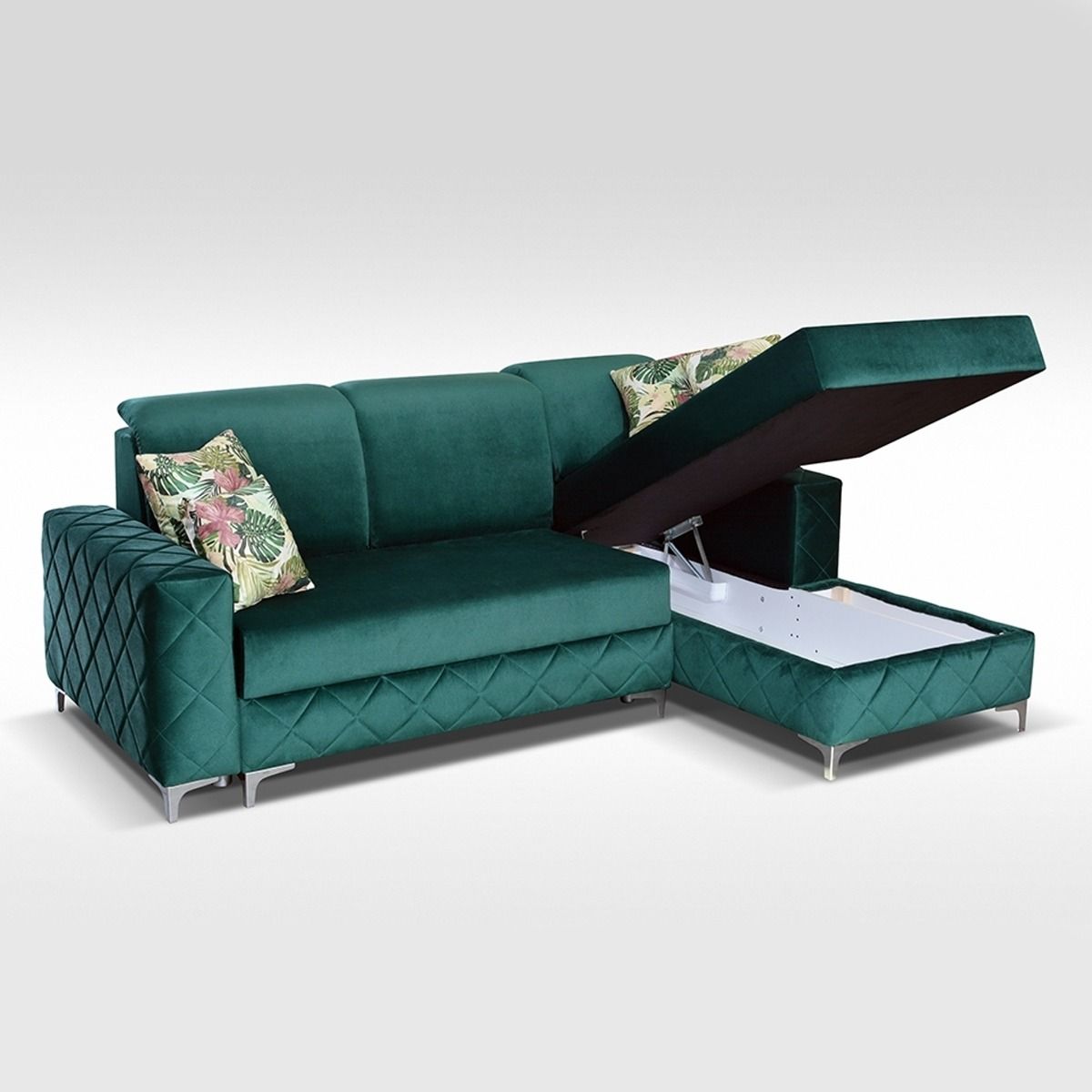Hamilton Diamond Design Velvet Fabric Small Sofabed with Ottoman Storage - Green