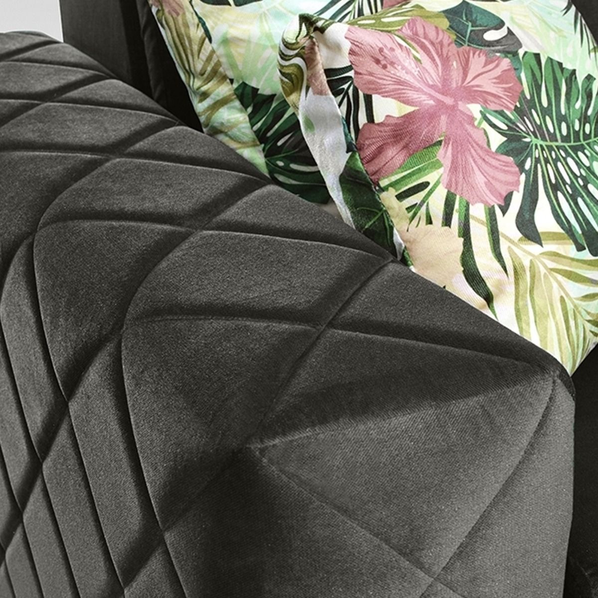 Hamilton Diamond Design Velvet Fabric Small Sofabed with Ottoman Storage - Grey