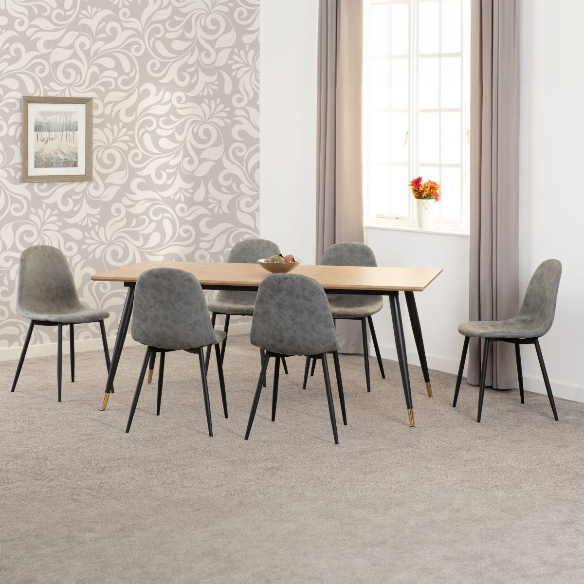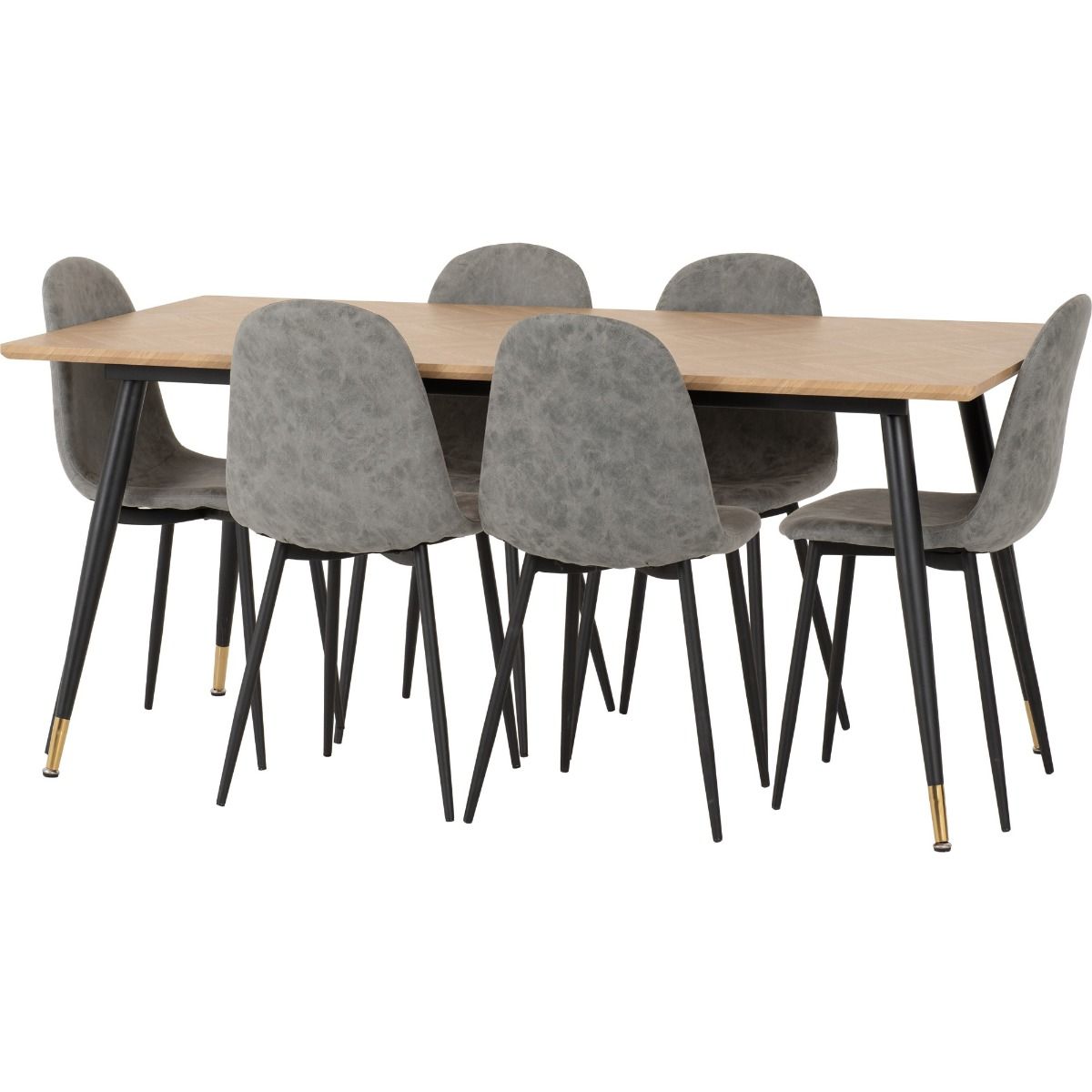 Hamilton Large Dining Set with Athens Chairs - Oak Effect Black Grey Faux Leather