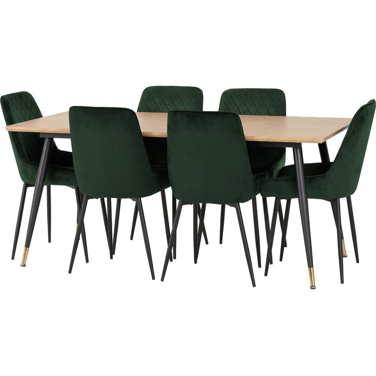 Hamilton Large Dining Set with Avery Chairs - Oak Effect Black Emerald Green Velvet