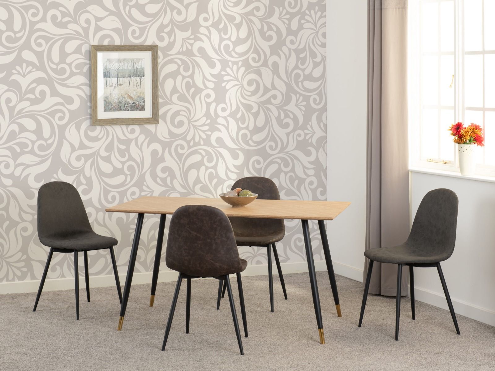 Hamilton Medium Dining Set with Athens Chairs - Oak Effect Black Brown Faux Leather