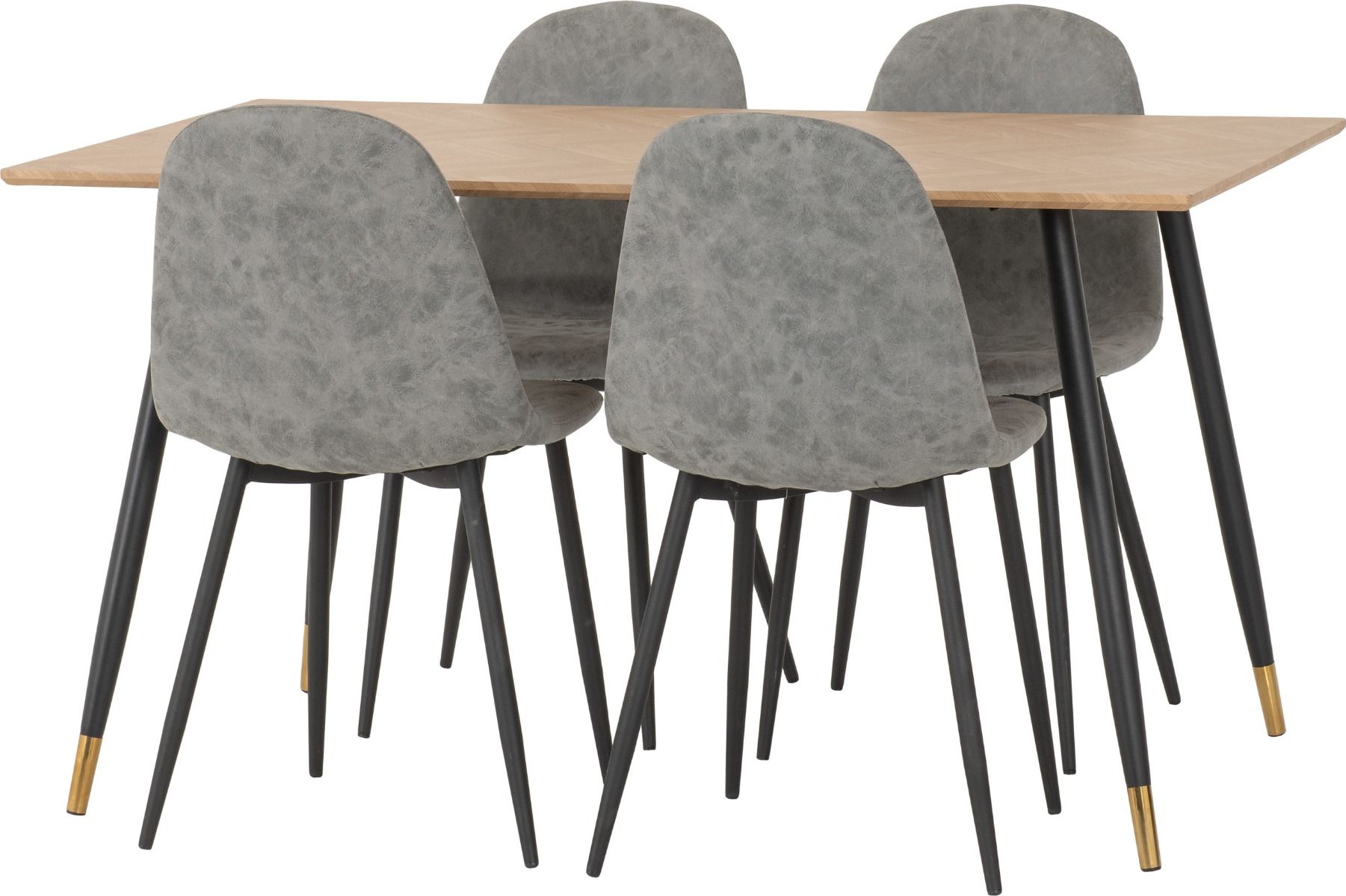 Hamilton Medium Dining Set with Athens Chairs - Oak Effect Black Grey Faux Leather