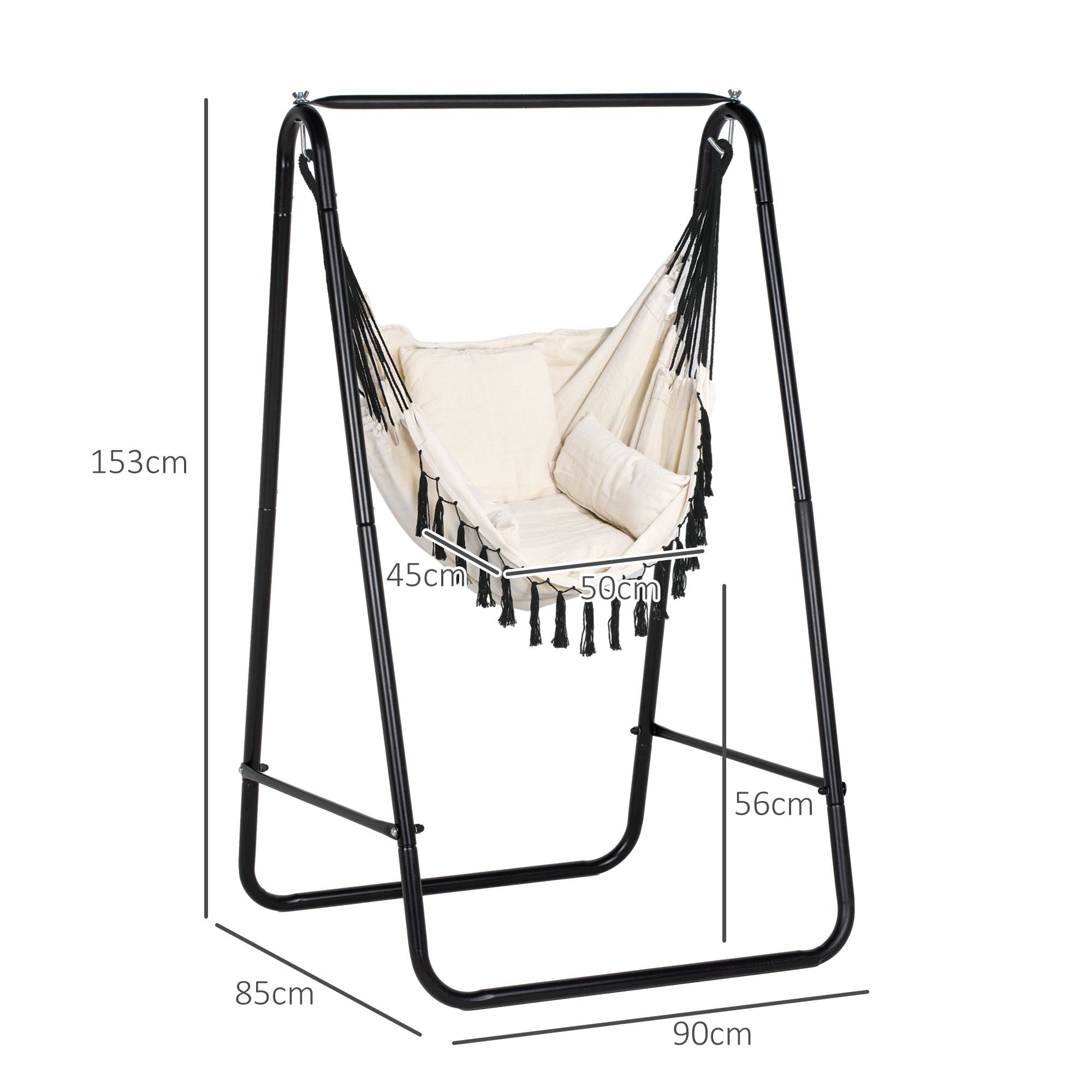 Relax in your own garden with this Outsunny garden hammock chair. A solid metal frame for a strong, supportive core - the cotton hammock seat hugs you in comfortably. The A shape of the chair curves with your body for maximum comfort. Soft padded cushion is soft. Quick and easy to set up.