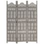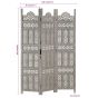 Hand carved 3-Panel Room Divider Grey 120x165 cm Solid Mango Wood