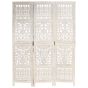 Hand carved 3-Panel Room Divider White 120x165 cm Solid Mango Wood