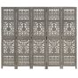 Hand Carved 5-Panel Room Divider Grey 200x165 cm Solid Mango Wood