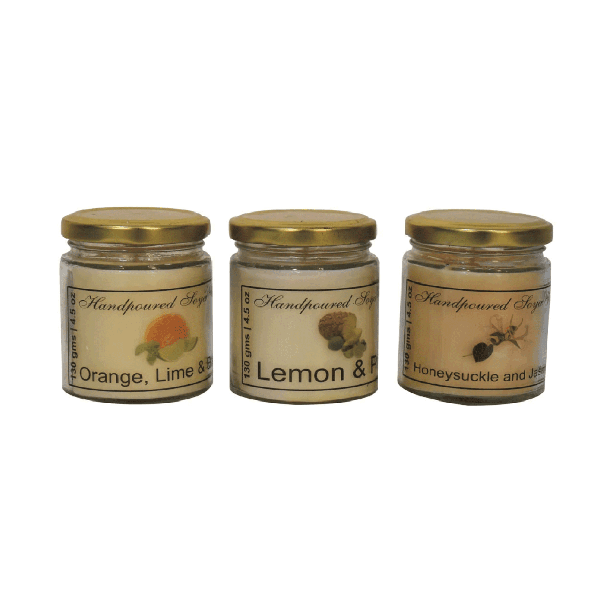 Handpoured Candle Gift Set of 3 - Orange, Lime and Basil, Lemon and Pine, Honeysuckle and Jasmine