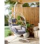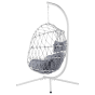 Offer yourself a spot for relaxation, where you can comfortably enjoy a new book with a cup of afternoon tea. This hanging egg chair thanks to the stylish weaving of the seating and a minimalist form can be a nice addition to various interior designs. What is more, thanks to the thermal spraying finish which increases the resistance and durability of the materials used, you can place this furniture not only in your living room or bedroom but also on the balcony or terrace. The gentle rocking movement of the piece and the thickly padded cushions will help you wind down after a stressful day. Details: Color: White, Grey. Main material: Polyester. Additional material: Steel. Material Composition: 100% Polyester Weight: 26 Assembly: Partial Assembly Required Weight Capacity: 120 Cushions Dimensions: 100x100x15/50x25x15 Padding Thickness: 15 Seat Height: 34