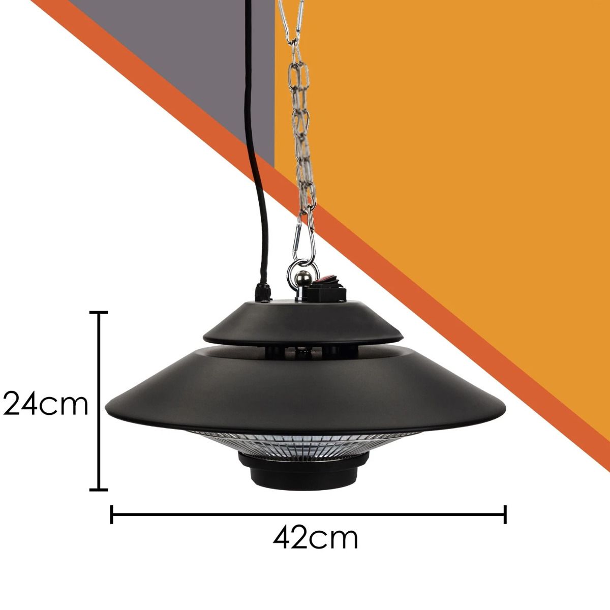 Therefore this electric lamp is ideal for parties and BBQs! Moreover, the adjustable metal suspension chain with carabiner clips allows you to hang this heater anywhere, at the right height! In addition, this lamp has aluminium housing and built in overheating protection. The IP44 waterproof rating means it is safe to use in all weathers.