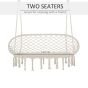 A seat to relax the day away in with company - wherever you choose to - this double-seat hammock chair from. The boho style is pretty and elegant, showcasing fringe tassels wrapped in rope. The metal frame is strong for support, and the curved back and armrests keep you supported. Comes with a spacious seat to keep you comfortable.