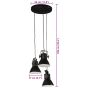 This hanging lamp is definitely a highlight in the living room, dining room, offices, and more. Sturdy material: Iron is a strong and hard material. It's a solid favourite in industrial and furniture construction. Hand-painted colour: As every piece is handmade and unique colours will vary for each product. 3-lampshade design: The lamp, with 3 lampshades, has three E27 sockets for bulbs of a maximum of 25 watts. You can choose and install E27 bulbs with various light colours, creating an atmosphere of relaxation and restfulness. Industrial style: The iron lamp shade, featuring a dead black finish, will fit perfectly into a rural or industrial interior. Good to know:This is an industrial style lamp with imperfections at the lampshade, which gives the identity for the lamp and makes it unique with its rough looking.The bulbs are not included.
