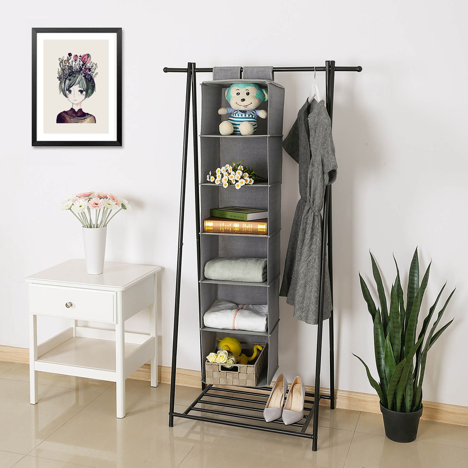 Description: Do you get frustrated when the piles of your neatly folded clothes collapse when you are searching through your clothes? This breathable fabric hanging closet from will keep clothing tidy and give you additional storage shelves. It is stylish and can help organise your bedroom, child's room, motor home or caravan. Hiding away in a wardrobe, when you open it, everything will be neatly laid out and easy to get to!