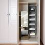 Material: polyester + non woven fabric + cardboard - Ovarall size: 30 x 30 x 130 cm (W x D x H) - Package size: 31 x 31 x 5.5 cm - Size of each compartment: 30 x 30 x 21 cm (W x D x H) -