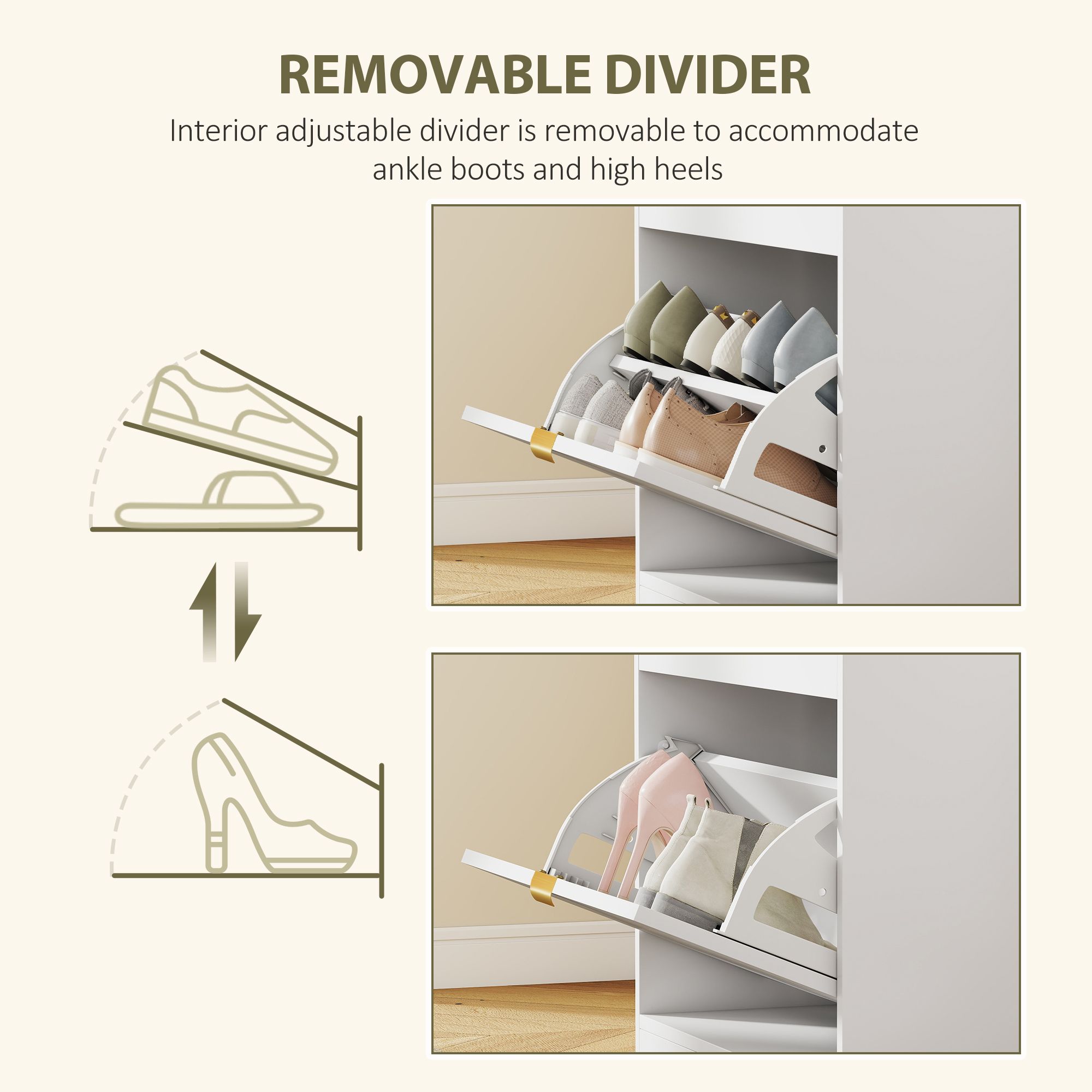 HARBRY Shoe Storage Bench with Seat and Flip Drawer - White