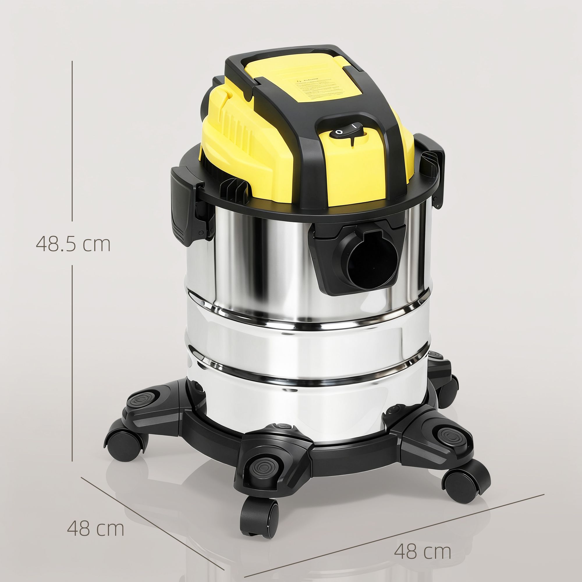 Overall Dimension: 48L x 48W x 48.5H cm, Dust Bin Size: Dia29 x 30.5H cm, Dust Bin Capacity: 20 L, Power Cord Length: 3.6 m, Hose Size: Dia32 mm x 2 m, Suction Power: 17.5 kPa