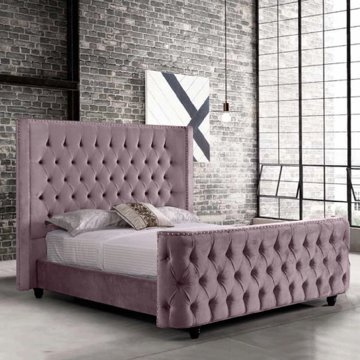 Featuring a fabric buttoned headboard with footend and a stunning curved design, finished off in a luxurious plush velvet fabric. Wooden feet and solid wooden slats