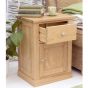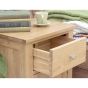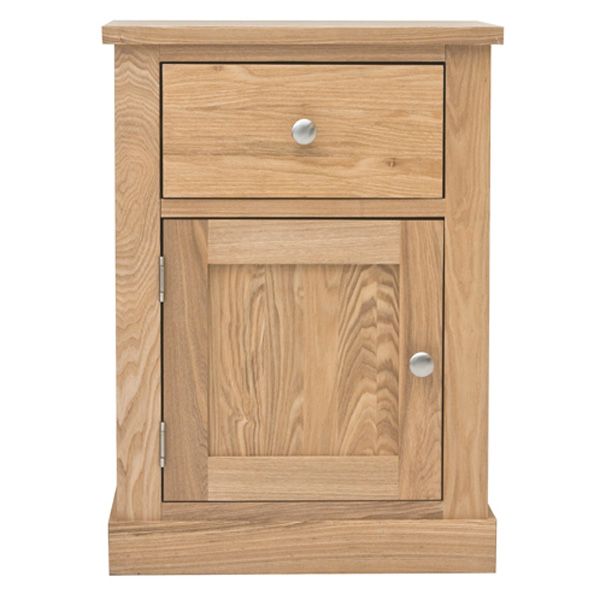 Introducing our superb contemporary oak lamp table, featuring both a cupboard and a drawer for convenient storage options. This versatile piece perfectly complements all coffee tables in our oak living range and serves admirably as a bedside table as well. Crafted from the highest grade selected solid oak with exceptional build quality, it boasts panelled sides, hardwood tongue and groove back and drawer inner, dovetailed drawer joints, and stylish brushed steel two-tone handles. The resilient satin lacquer finish enhances the natural beauty of the oak, ensuring a solidly constructed and elegant addition to our Harriet Oak contemporary living room furniture range.