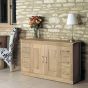 Finished with stylish brushed steel two-tone handles and a resilient satin lacquer finish, this solidly constructed piece requires no assembly and comes with heavy-duty packaging for added convenience. Part of our Harriet Oak contemporary dining room furniture range.