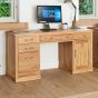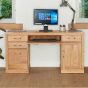 Harriet Oak Contemporary Large Twin Pedestal Computer Desk with Door and Drawer