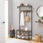 In the morning on busy workdays, a functional hallway rack can really help a lot. In order to save your money and room space, VASAGLE presents the brand new hallway rack which combines hat and coat stand, shoe bench and shoe storage rack perfectly. Coat Rack - 5 robust dual hooks to keep your coats, keys, hats and scarves organised and easy to access. Shoe Bench - Vintage fibreboard provides a seat when you remove shoes, also great for handbags and storage bins, keeping the clutter out of your way. Shoe Rack - The bottom metal mesh shelves hold your daily footwear in one place, saving your precious time on searching and pairing. Take this eye-pleasing rustic rack home and welcome your guests with a clean and tidy hallway!