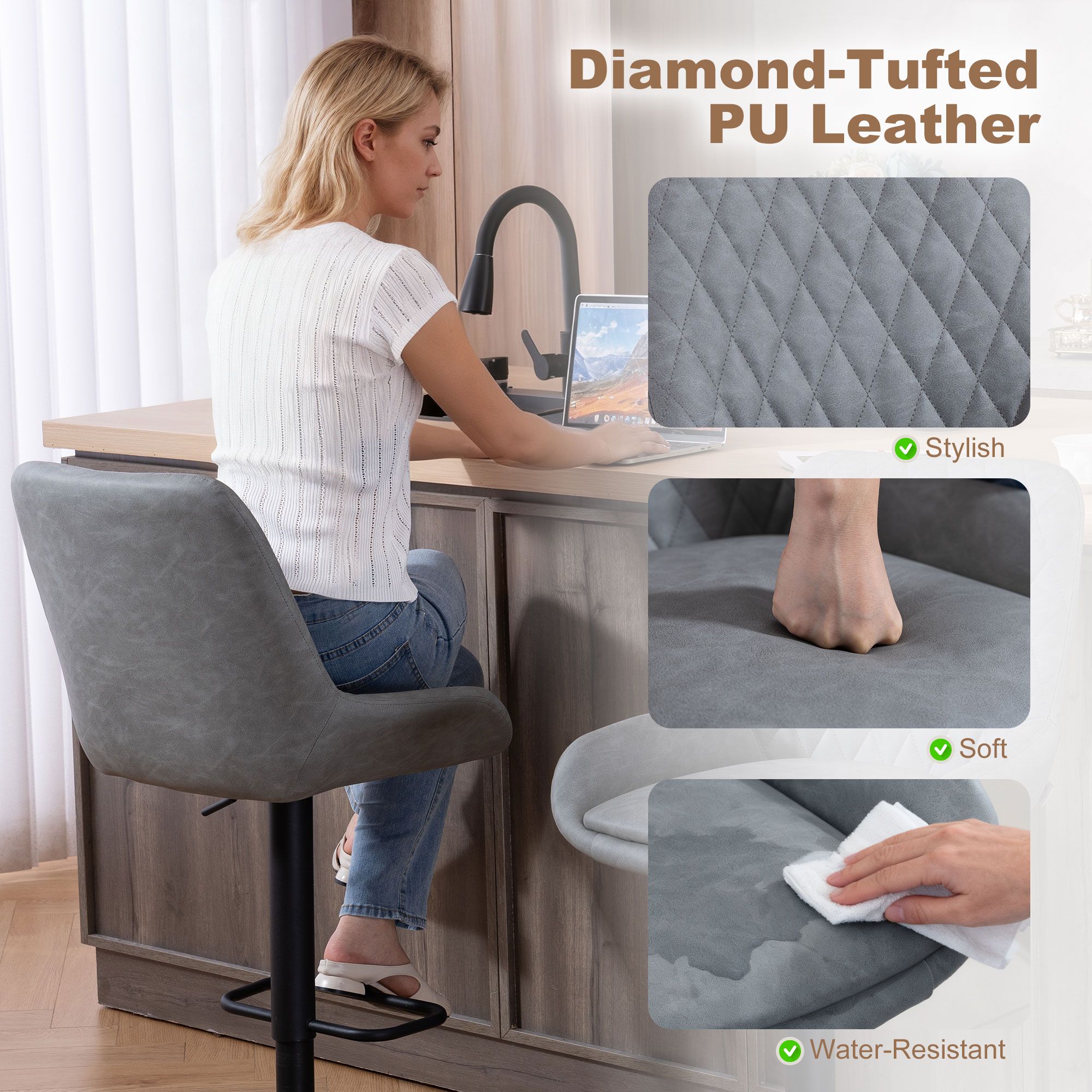 HATHERBY Faux Leather Retro Bar Stools Set of 2 - Light Grey