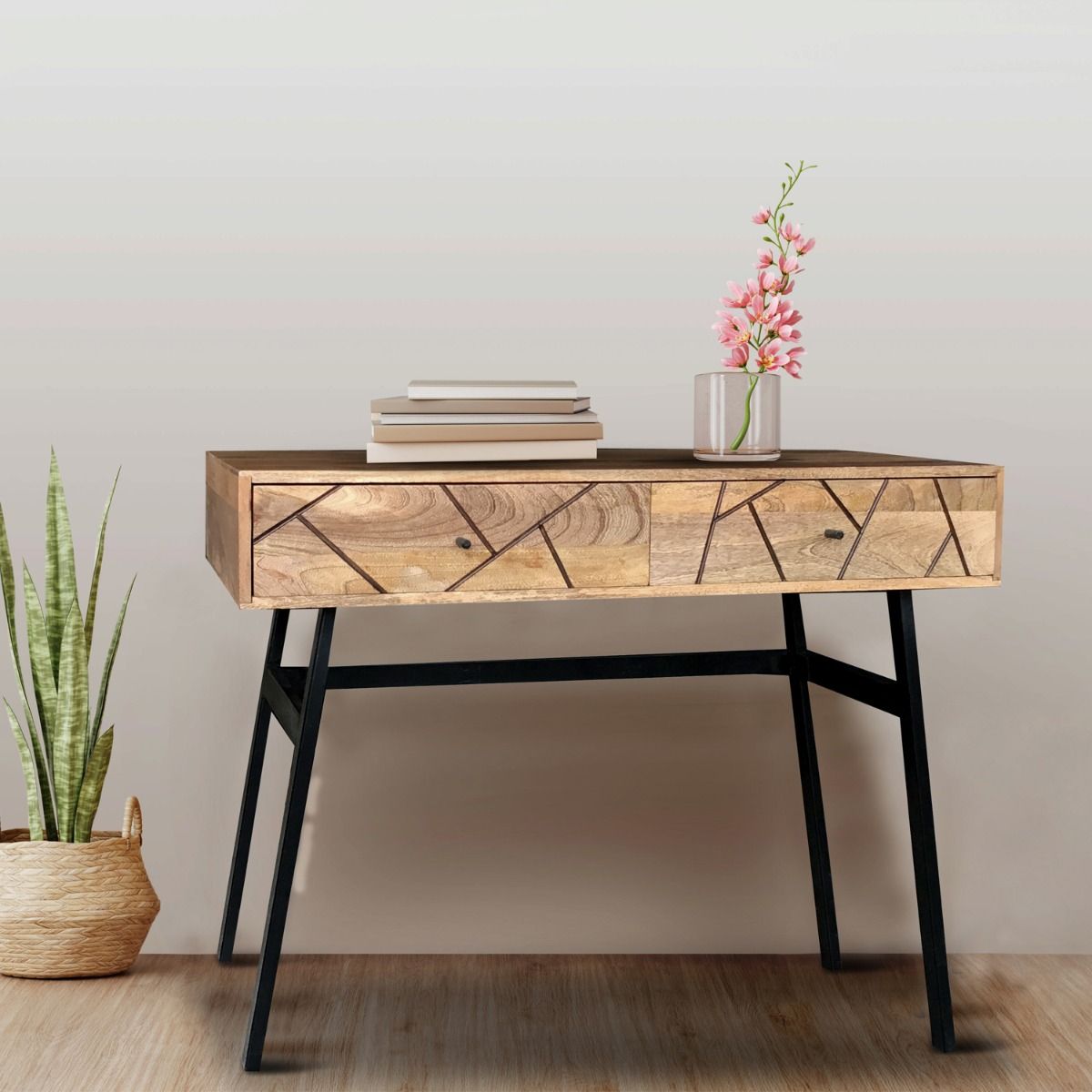 Havant Black Iron Base Retro Style 100cm Console Table - Light Mango Wood