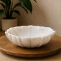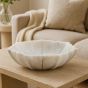 The HAVERLYN lotus-shaped white marble bowl features sculpted petal edges and a polished finish, perfect for adding a refined decorative touch to the interior.