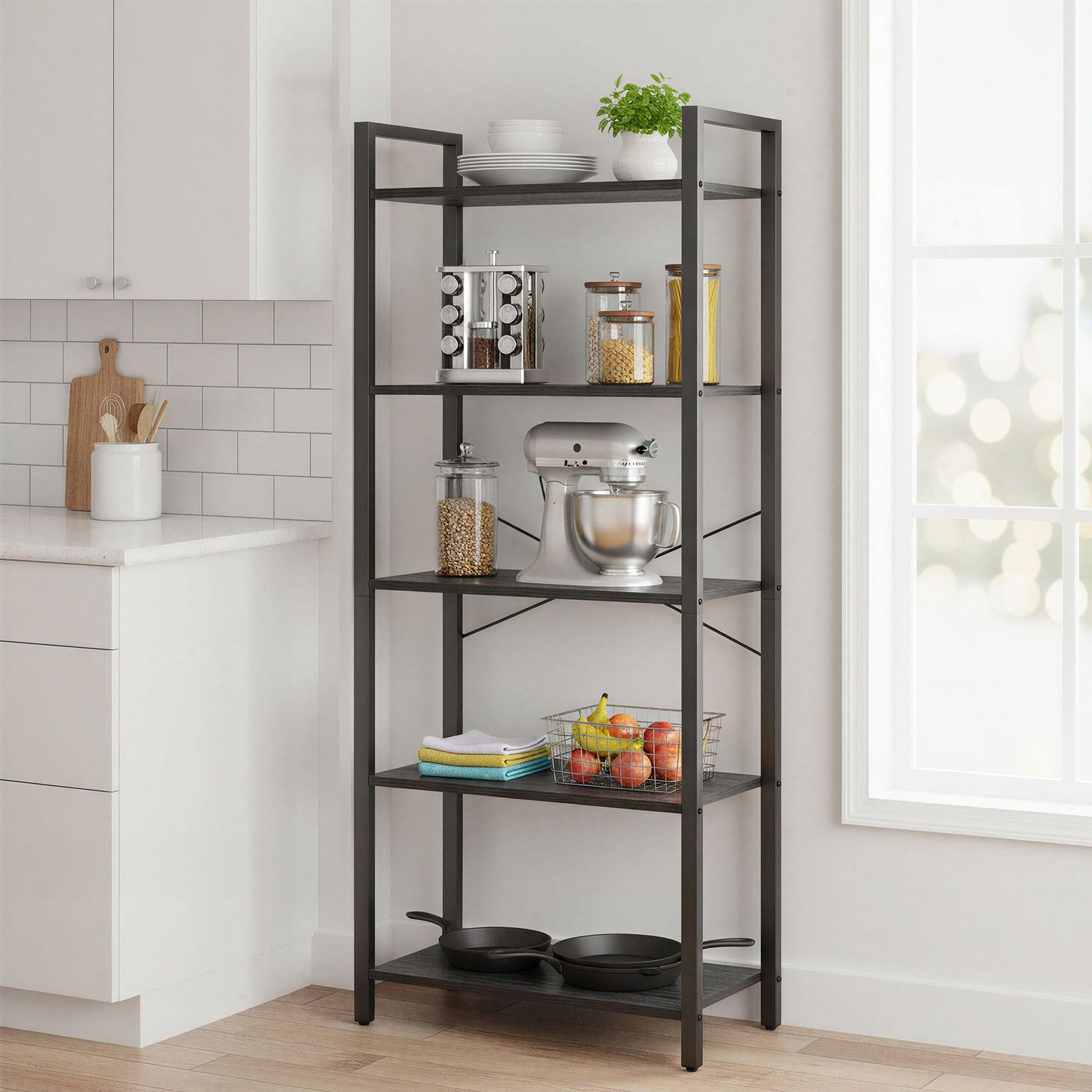 HAWTHORNMERE Tall Bookcase with 5 Industrial Shelving Unit - Black