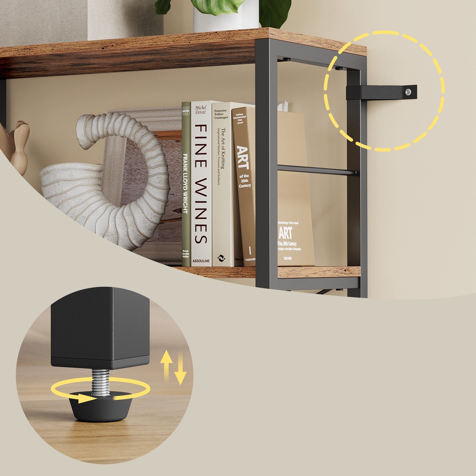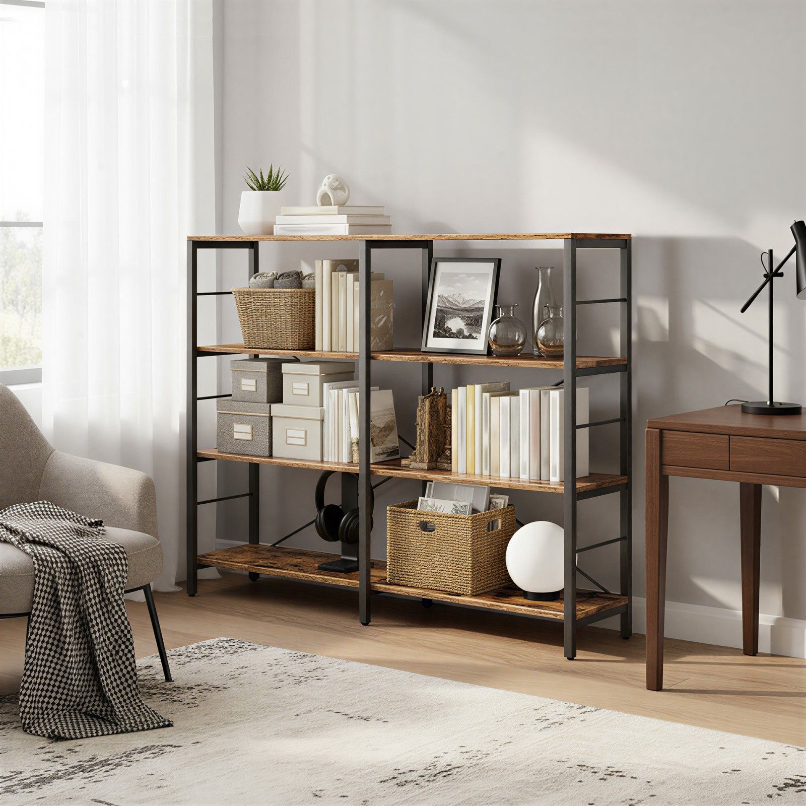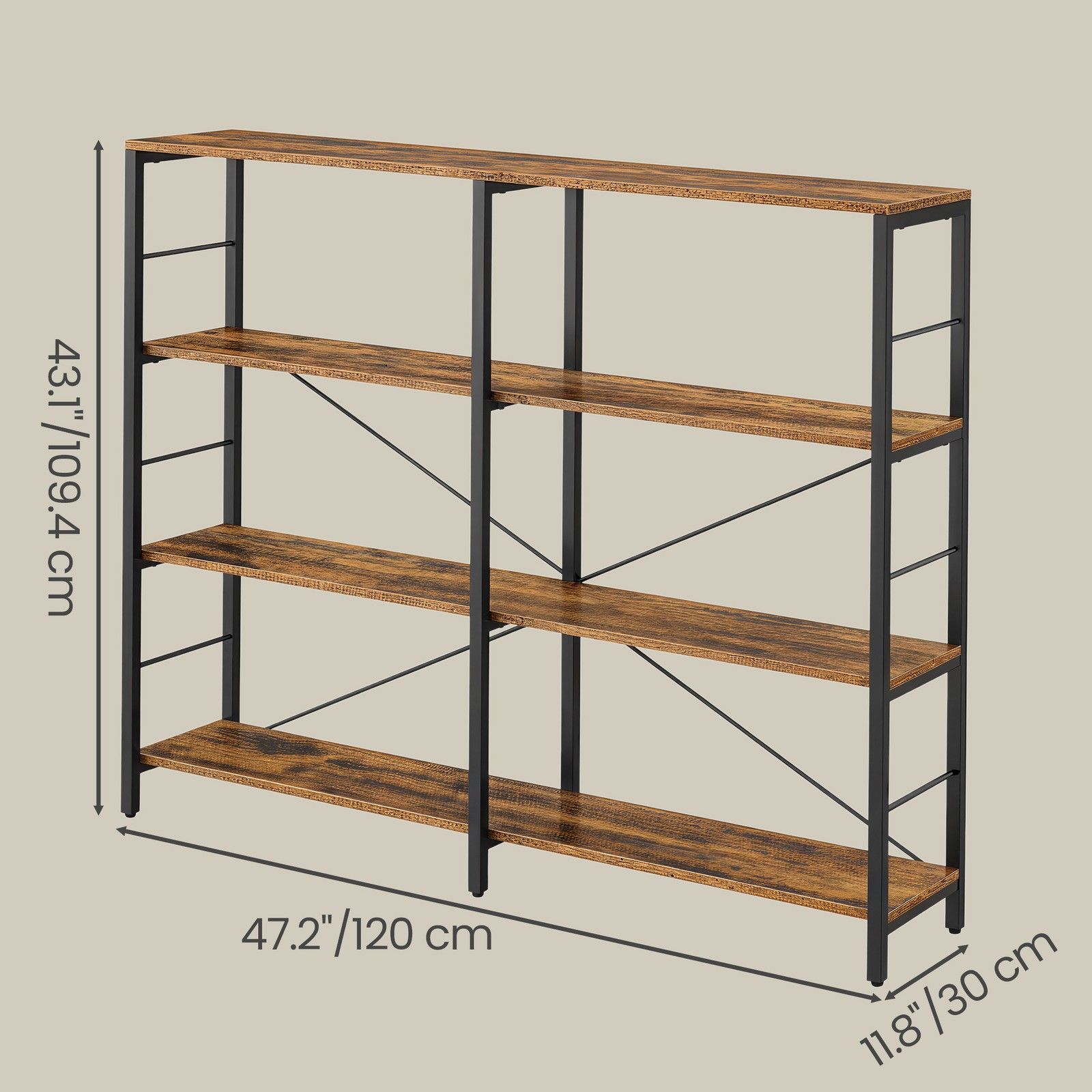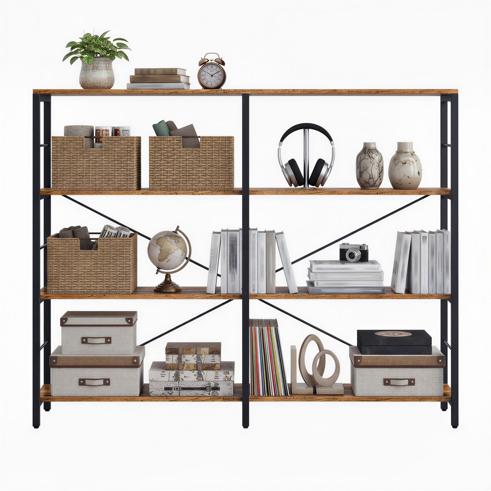 HAWTHORNMERE Tall Industrial Style Bookcase - Medium Oak and Black