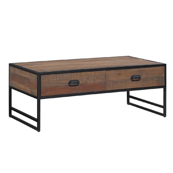 Hayley Metal Frame Reclaimed Wood Coffee Table with Four Drawer