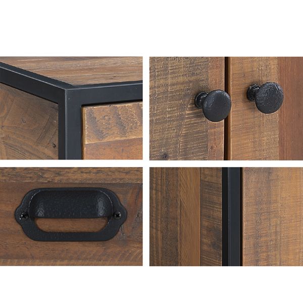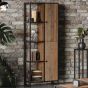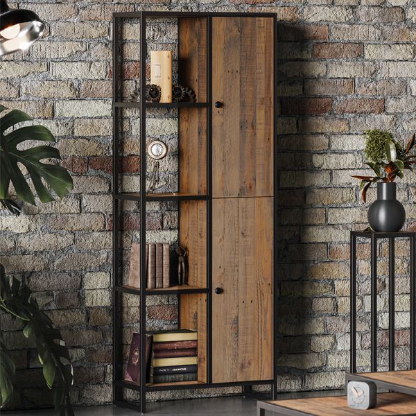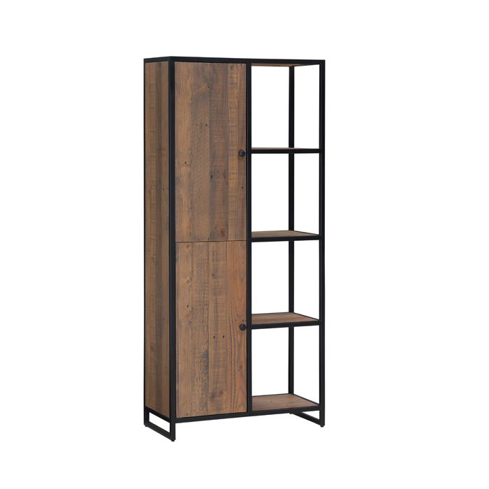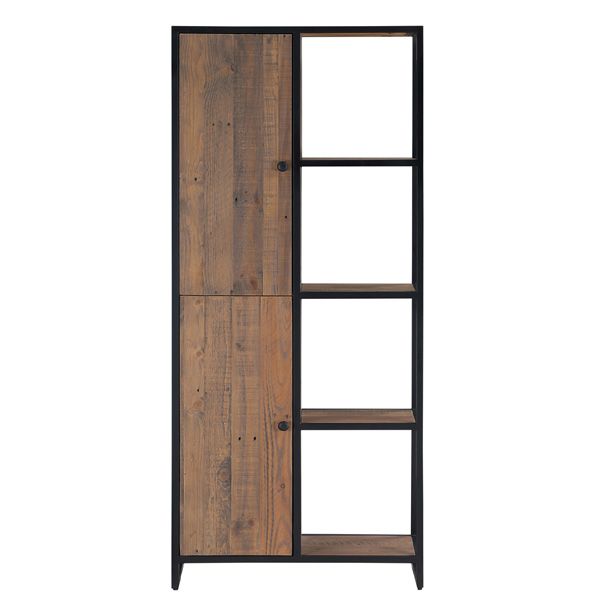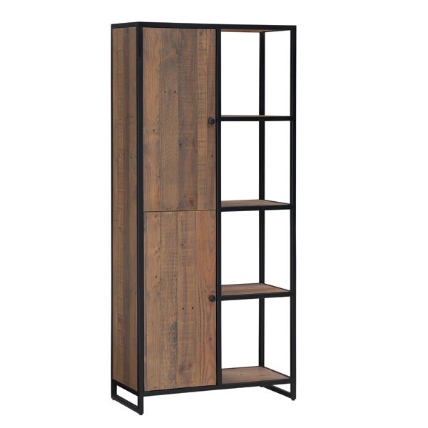 Hayley Metal Frame Reclaimed Wood Tall Bookcase with 2 Door and Open Shelf