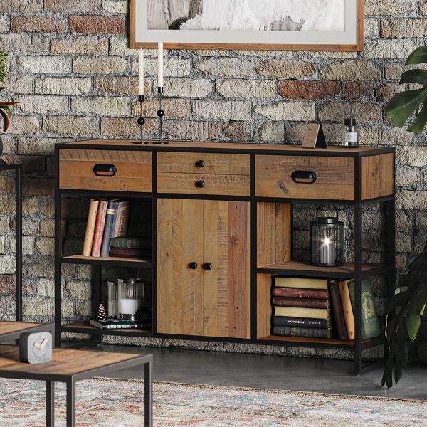 Hayley Reclaimed Wood Console with Drawers, Cupboard, and Shelves
