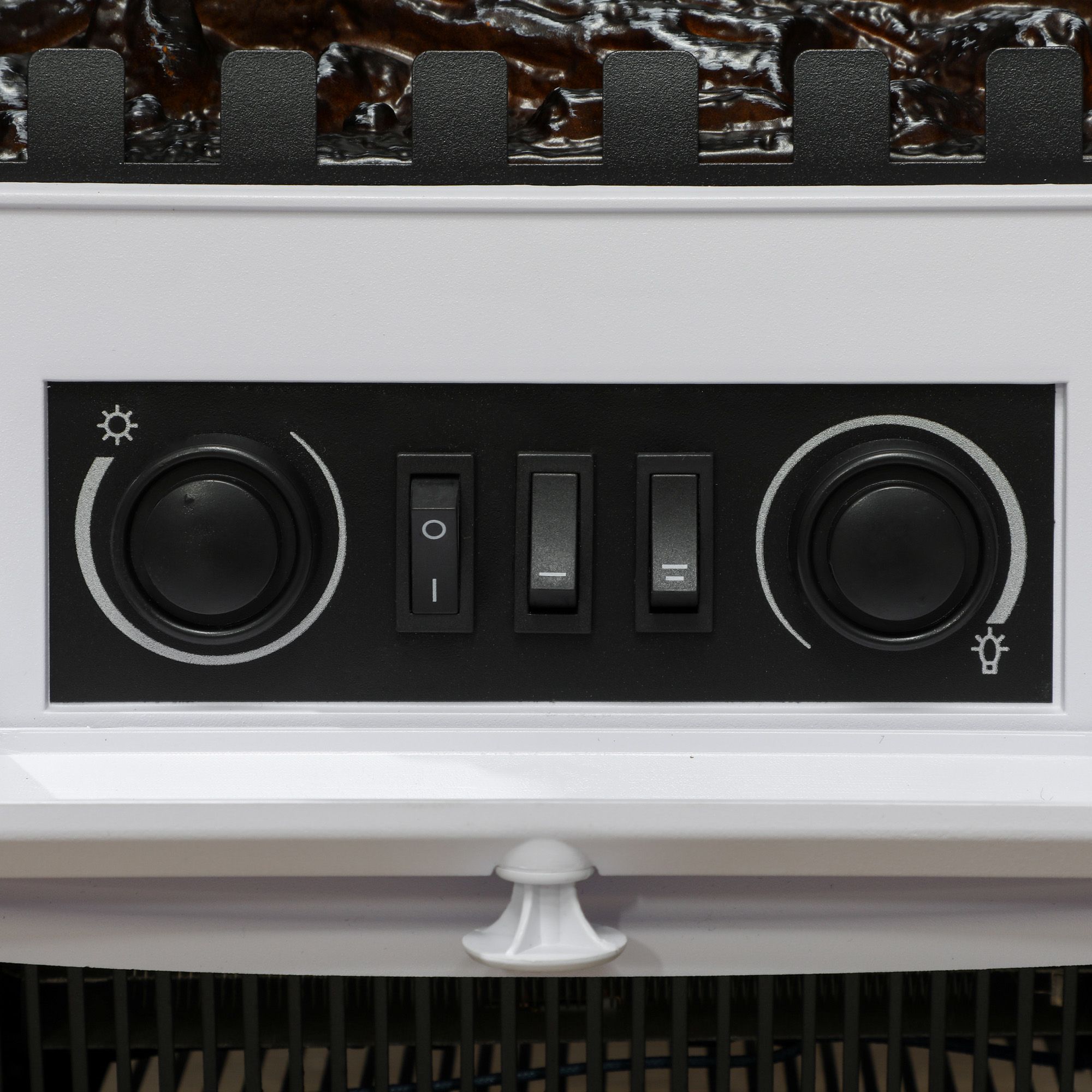 Opt for a vintage look when keeping warm with this PUERTO electric fireplace heater. Switch between 1kW - 2kW, and adjust the thermostat: set the heat to your preference. Fitted with a faux fire with realism, you can adjust the brightness freely - create a beautiful burning bright scene or let it glow delicately. Electric fire heater comes with auto shut-off feature, so it doesn't dangerously overheat.