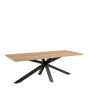 Introducing the centerpiece of your dining room - a dining table that marries rustic charm with modern elegance. Its spacious rectangular tabletop comfortably accommodates up to 10 people, ideal for intimate gatherings. Infusing a touch of nature indoors, the tabletop boasts an oiled wild oak veneer surface, lending an inviting warmth to the space. Supported by a sleek black metal cross base, it exudes vibrant energy, filling the room with vitality.