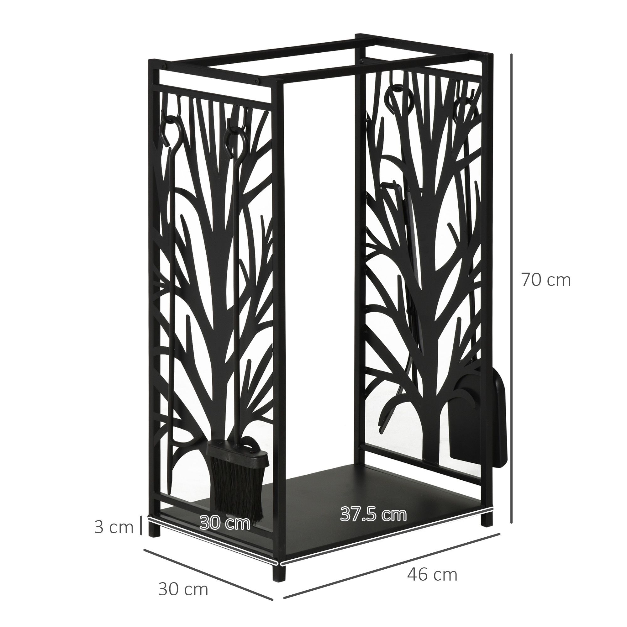 Heavy Duty Firewood Wood Log Rack Fireplace Wood Stacker Storage w/ 4 Tools, Black