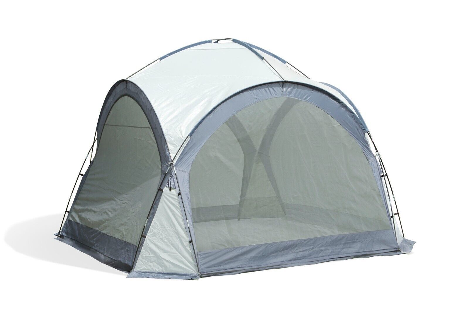 Huge area over 13 m2 worth of covered area with UV 50 protected fabric In Mixed Grey colours, Water Resistant PU Coated 150D Oxford fabric come with 4 removable mosquito net side walls and 2 sun shade side walls. Pegs, Guy Ropes and Handy Carry bag included. Hook for hanging a light in the roof and storage pockets in the sides. Ideal for Events, Shade in the Garden, Putting over Spas and Pools to keep the sun and flys etc out.