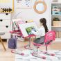 Height Adjustable Kids Study Desk Table Chair Set with Lamp - Pink