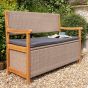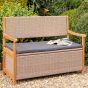 Helen Natural Rattan Storage Bench with Lift-Up Seat and Grey Seat Pad