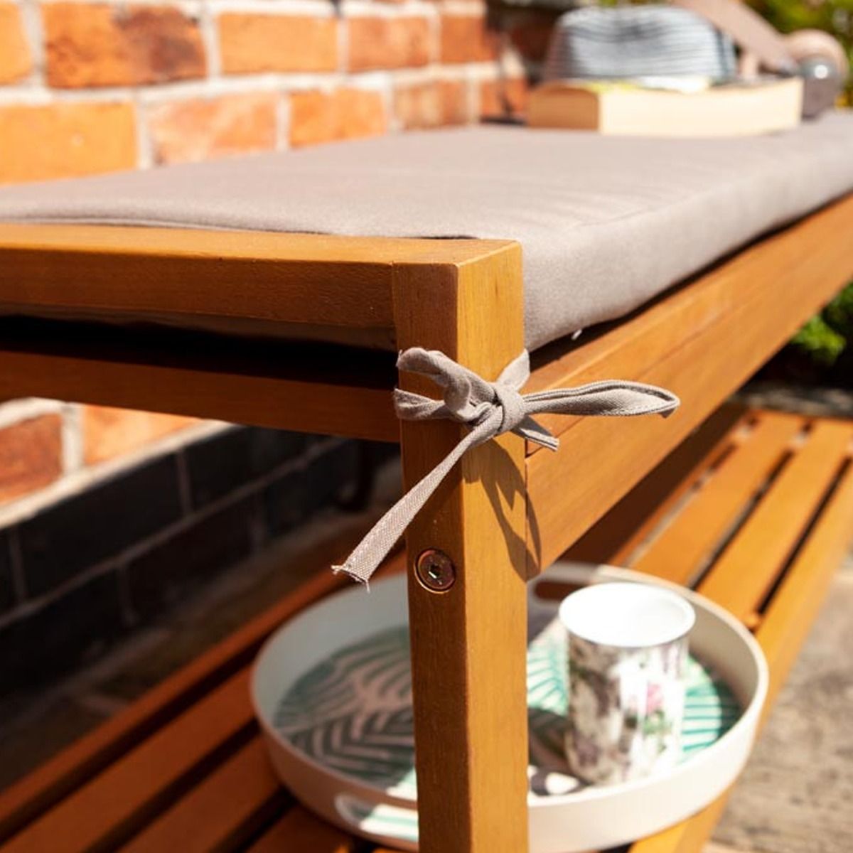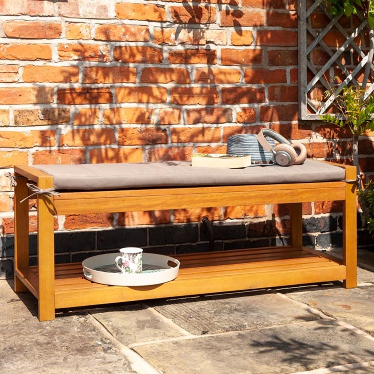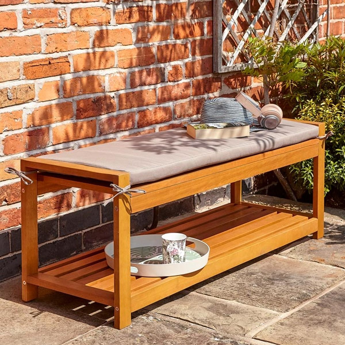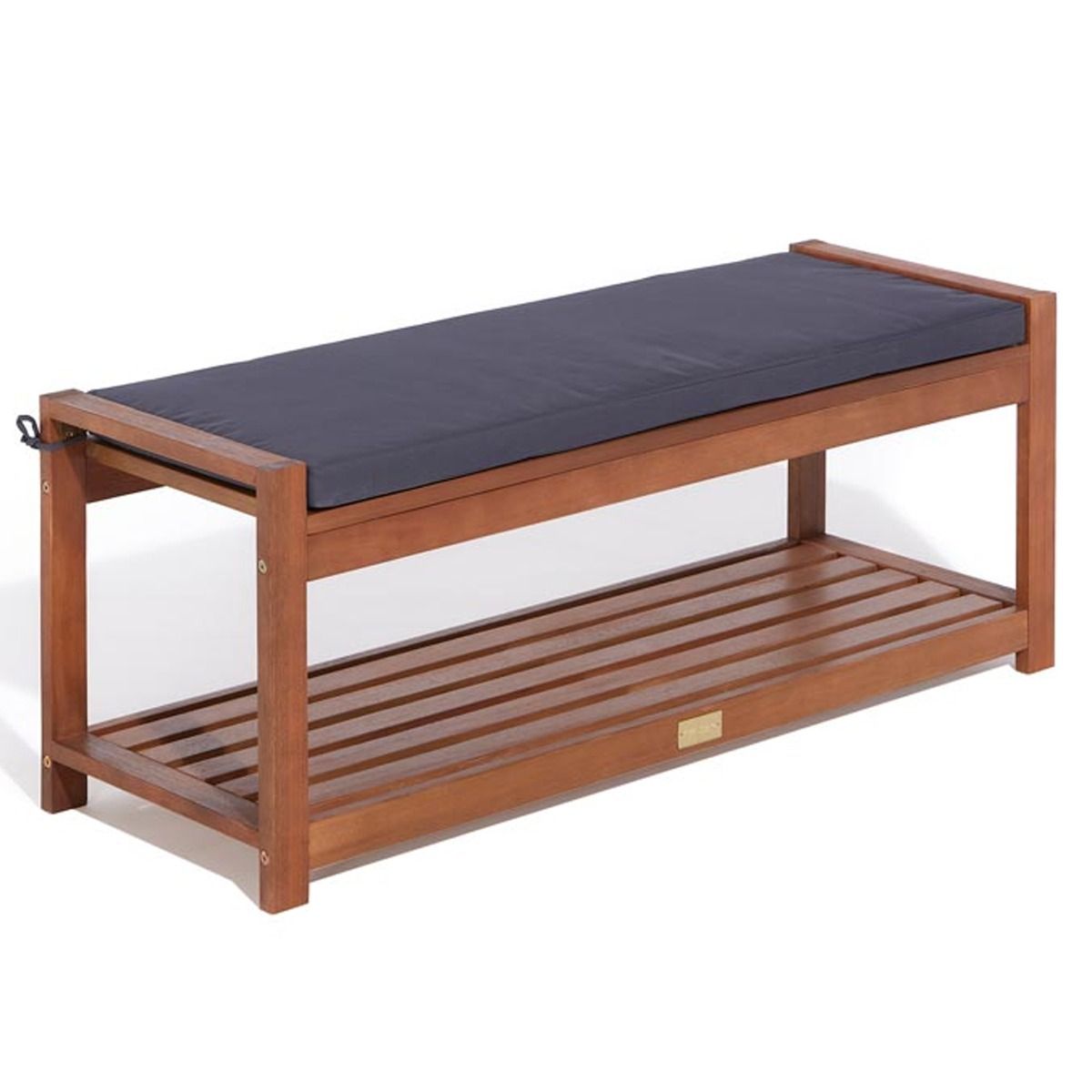 Helen Occasional Bench Hardwood Timber with Under Seat Shelf and Seat Cushion