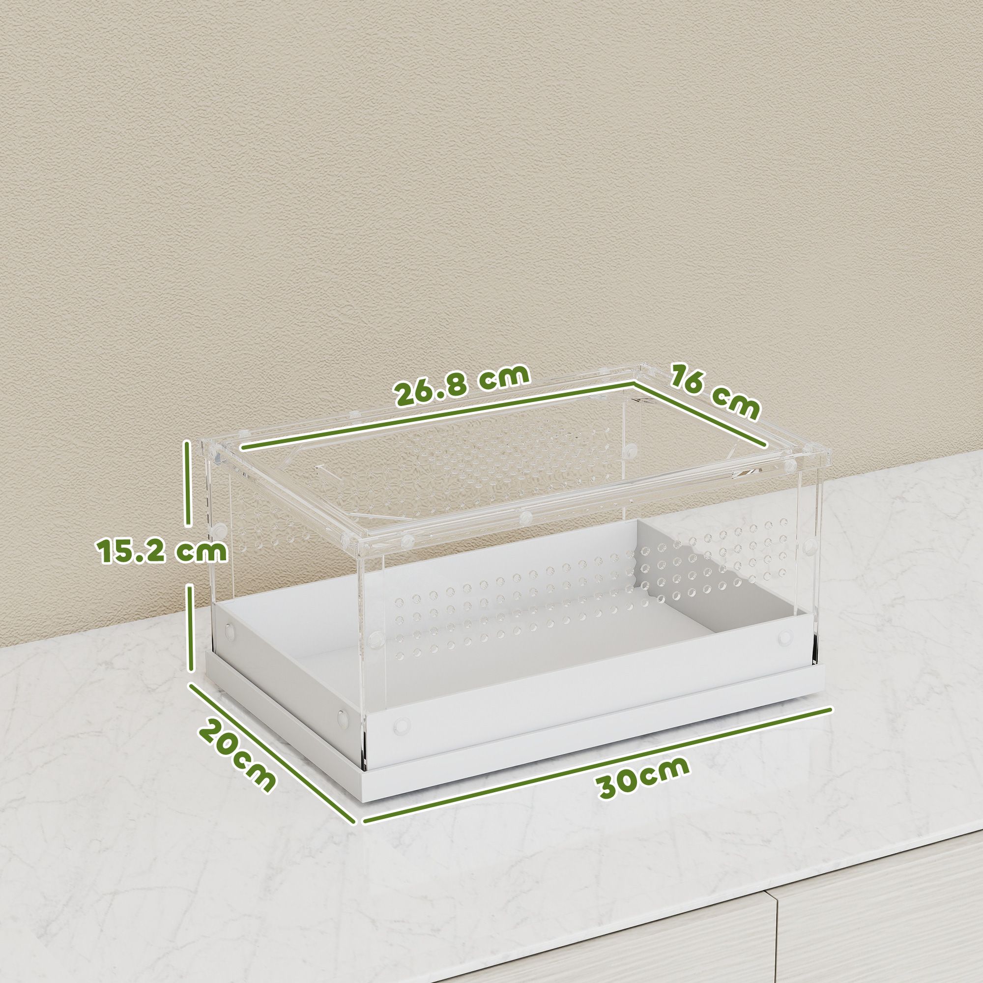 HEMSLEY Acrylic Reptile Terrarium with Sliding Door 30cm - Clear