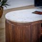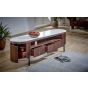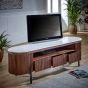 Hendry Metal Legs Fluted Style Mango Wood Large Tv Cabinet With 2 Drawers - White Marble Top